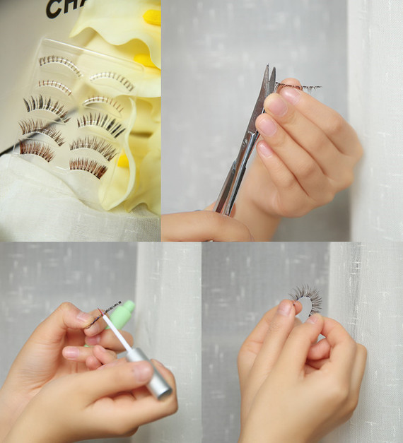 粘贴之前先根据自己的需要修剪睫毛长度。