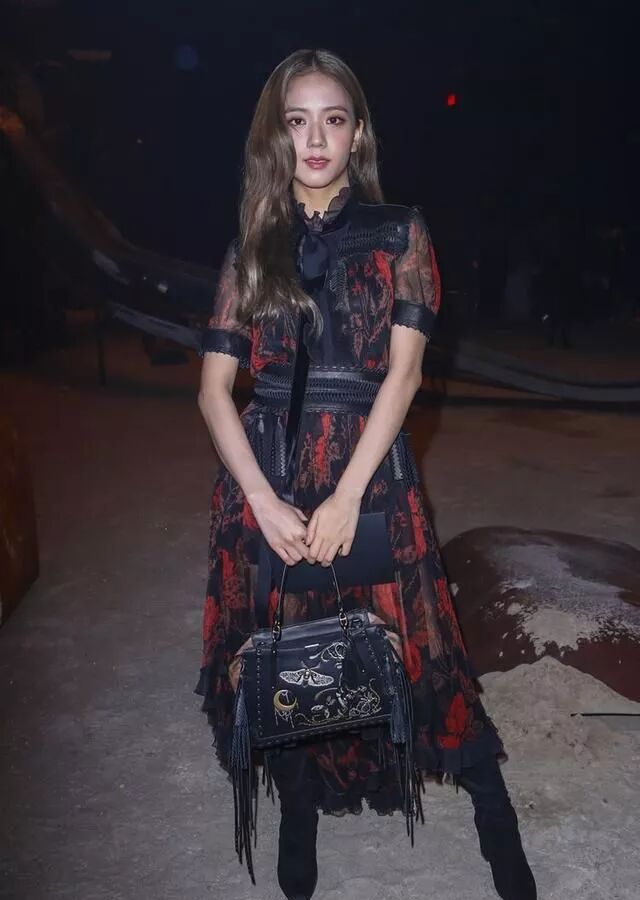 同样是穿着蔻驰的连衣裙,一样的色彩,只不过在款式上没有那么多的透视,搭配上金智秀真要给造型师加个鸡腿,束腰瘦身的连衣裙配黑色高跟靴,和黑色包包,简单大气,看上去一点都没显老,反而比以往青春少女的风格看上去更加的舒服多了。