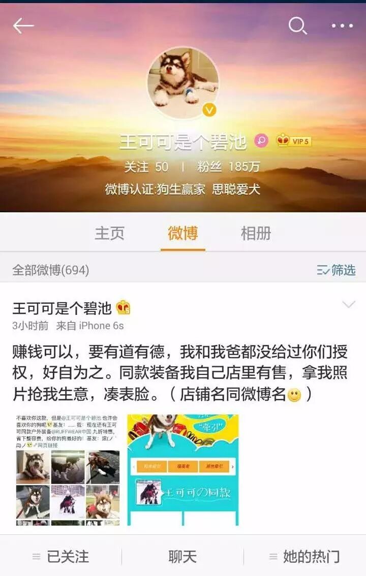 粉丝数:1859790个粉丝(小编:甘拜下风好么,小编写了三年微博都没这么粉丝多好么,王可可能给我打个广告不?给你狗粮吃!!)