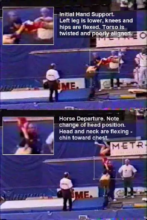 “受到意想不到入侵的干扰,桑兰无法适当地调整自己。她的头直接落在了垫子上,造成两节颈椎的折断和错位。”
