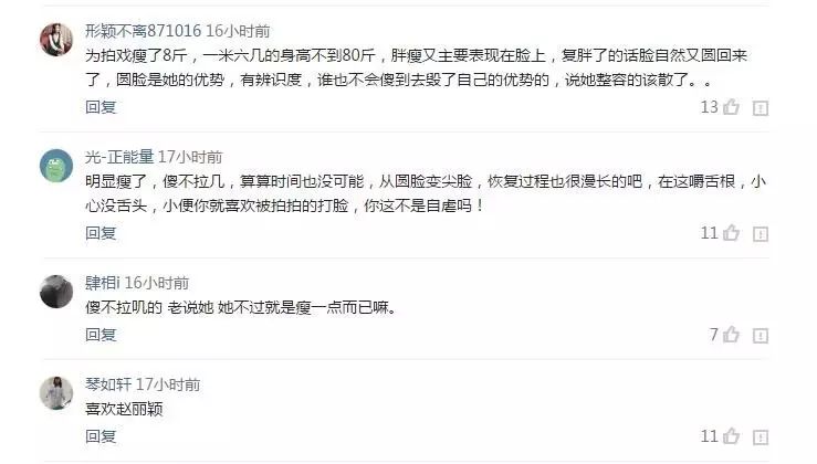 最后,说回赵丽颖,小瘦想问大家一个问题噢,你们觉得wuli小骨是瘦成现在的锥子脸好看呢?还是以前的肉嘟嘟的包子脸更美美哒?表下态吧!