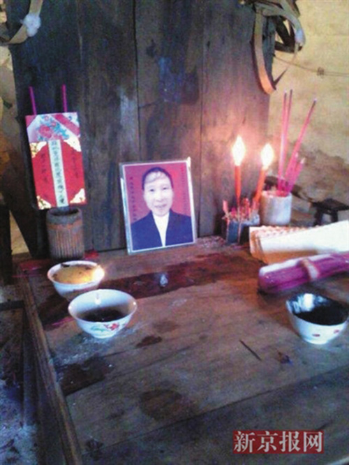 ▲《新京报》报道配图,图为射杀村妇案死者家属在家所设祭台