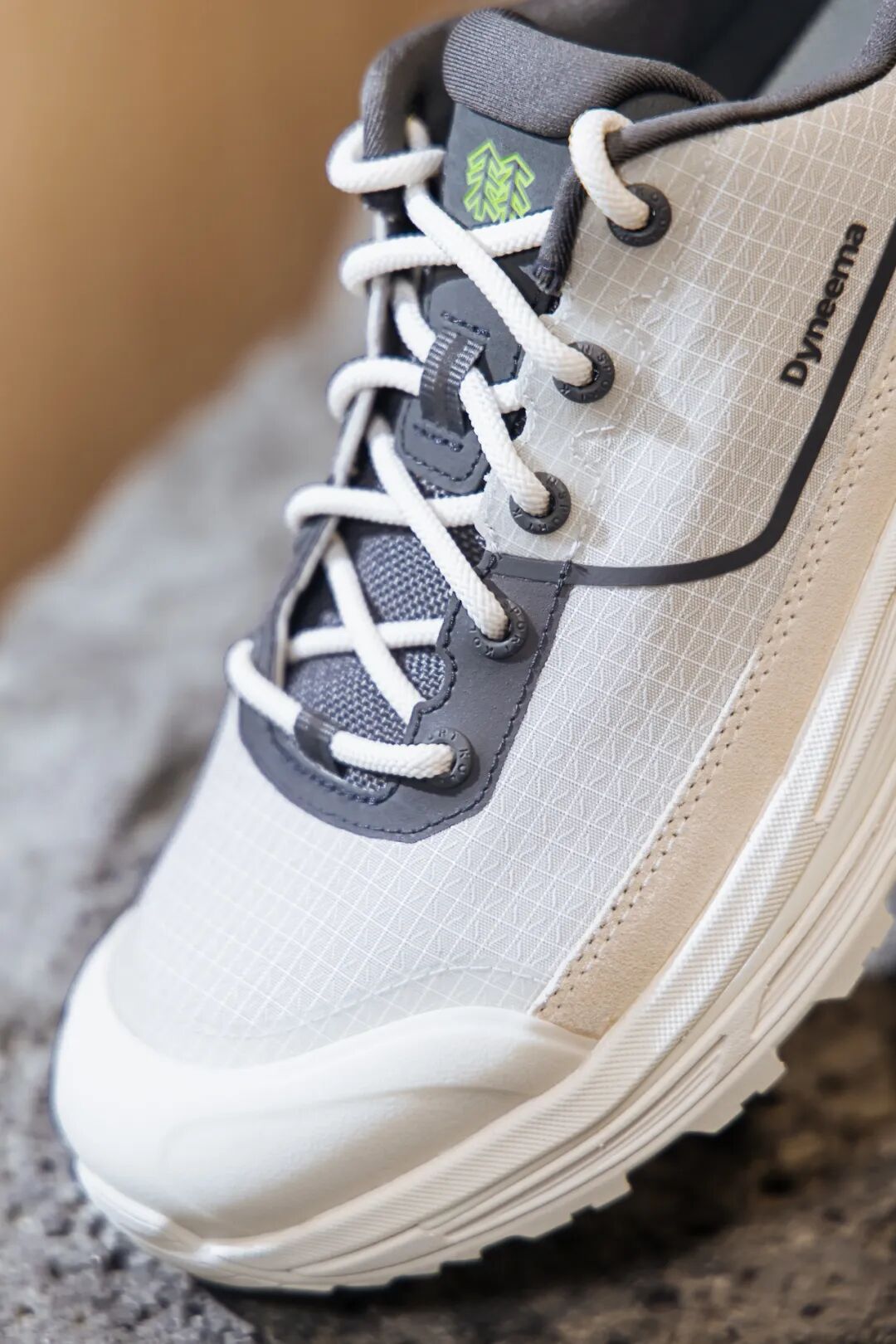 Dyneema® 的语境转换:将常用于户外、军事与医疗的 Dyneema® 面料首次应用在 MOVE ALPHA 2.0 徒步鞋鞋面,其核心优势——强度是钢的 15 倍,且重量极轻——赋予了鞋款「超常的轻韧体质」。这意味着顶级的耐磨与轻量体验,同时也不再专属于山野,而是能无缝融入每日通勤的步履行程,减轻双脚的负担。