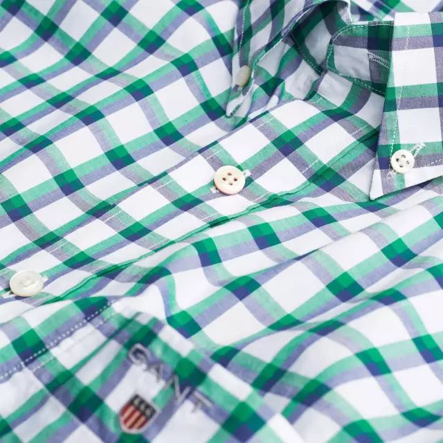 下扣领是GANT衬衣的一大特色。领尖扣最初是英国的一项创新发明,在英国,领尖扣一时风靡,而GANT则是将这种款式的衬衣大规模引入美国市场的首开先河者。