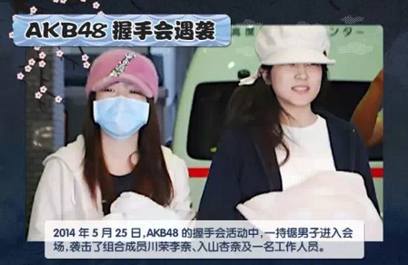 5月25日,AKB48在岩手县举办全国握手会活动,一名持锯男子进入会场,并在握手活动中用凶器袭击了川荣李奈,入山杏奈及一名工作人员。伤者当即被送往医院,而行凶者在现场安保的压制下被捕。