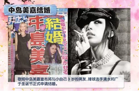 11月,歌姬中岛美嘉宣布将与自己年下3岁的男友,排球选手清水邦广于圣诞节正式申请结婚。据悉这两人交往于11年夏天,发展稳定,终于考虑在今年正式入籍。