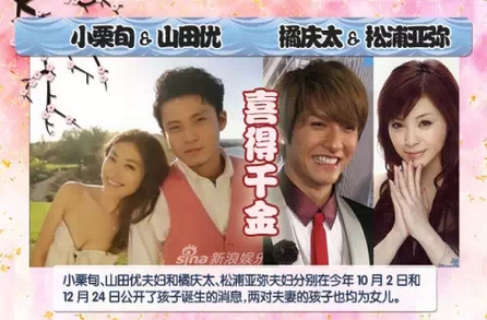 有人结婚,少不了有人生子。今年日娱圈最引人注意的大概要属小栗旬和山田优,以及橘庆太和松浦亚弥这两组家庭迎来的新生命。