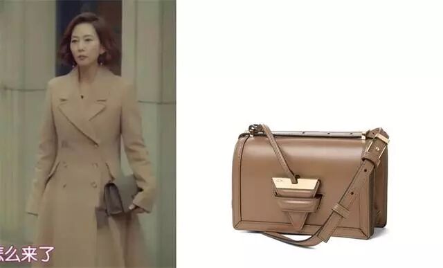 相比起以上的包包,以下这款Loewe的价格相对能让更多人承受。剧中用驼色的包包配了同色系的收腰大衣,干练又精致。