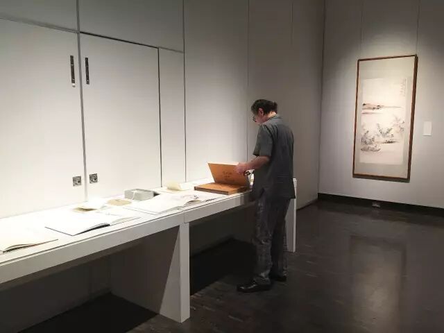 现场观众翻阅以往何香凝艺术精品巡展的文献