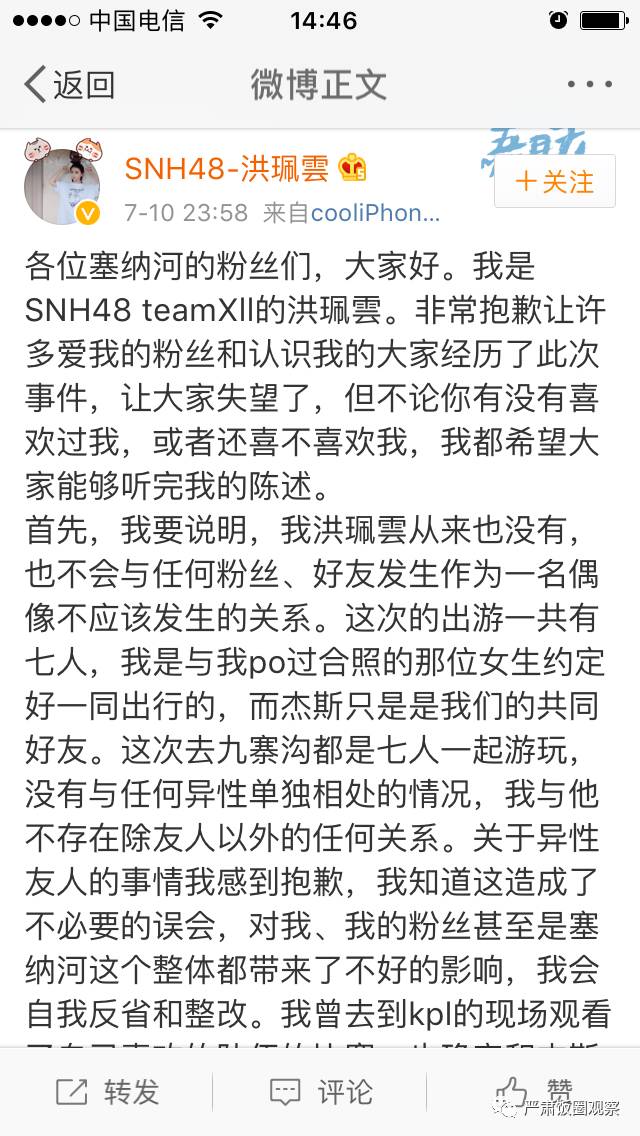 她搞出来一个大新闻是总选期间和男性友人去九寨沟旅行,后来在直播中澄清:一块出去玩的有7个人,没和异性发生不正当关系。