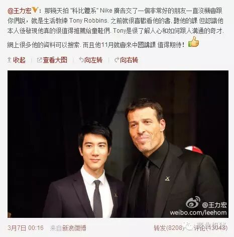 2012年 王力宏 新浪微博 推荐安东尼·罗宾的课程
