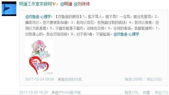 同年,明道工作室转发了一则星座运势@了他们二位↓