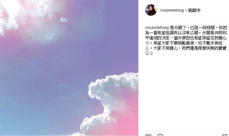 而早两天也爆出“胡说八道会”其中一名姊妹姚子羚跟男友郑子邦“不婚”即“分”,三年情就此斩断。
