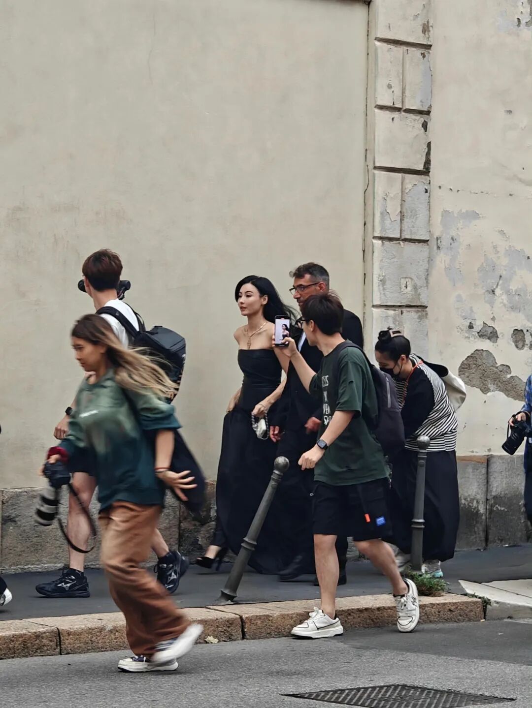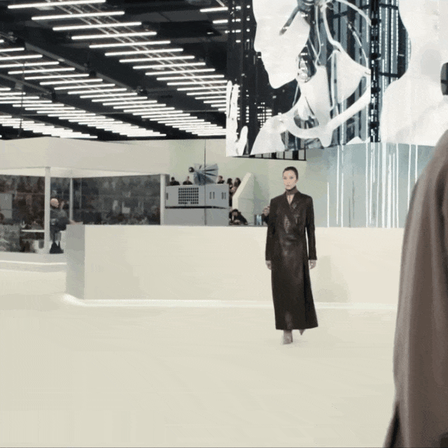 米兰时装周BV秀场,她一头大波浪黑发配西装,自信、松弛,美得让人沉醉。
