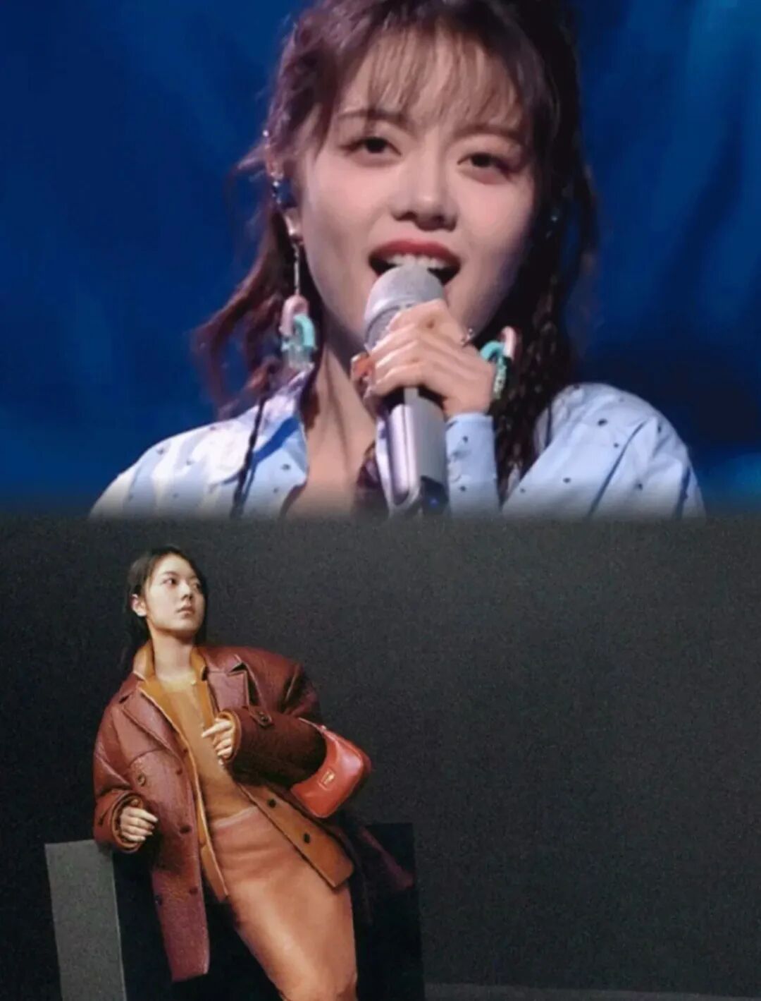 另一套在米兰穿的皮衣造型也不错,多了些酷飒感。