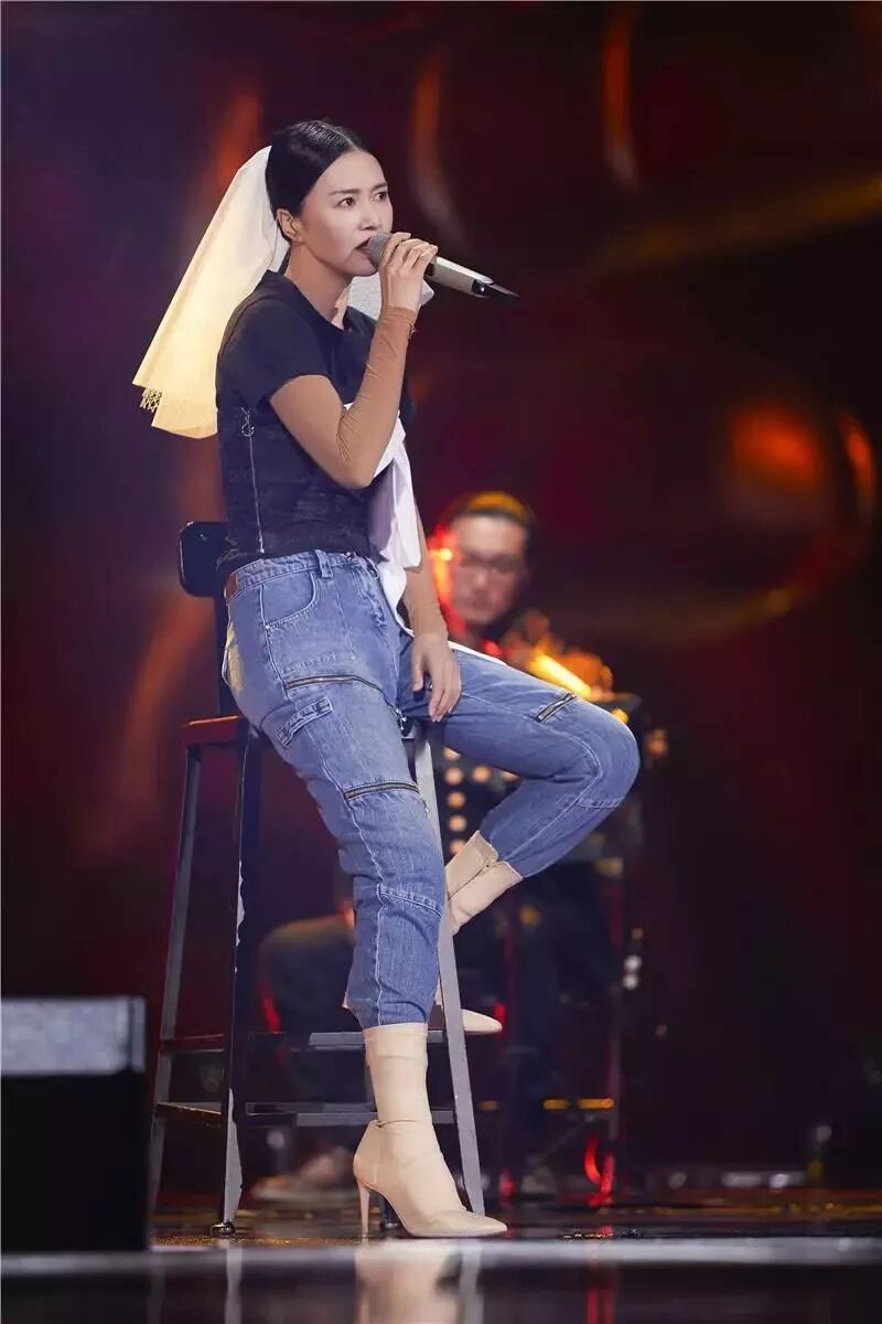最近,谭维维在《梦想的声音》舞台上,头披婚纱深情演唱了《晚婚》: