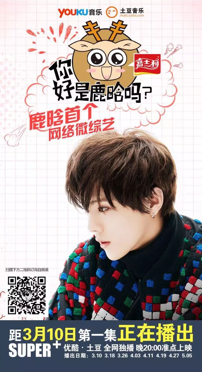3月10日晚上8:00鹿晗的首个个人“网络微综艺”《你好,是鹿晗吗》在优酷土豆上正式上线。一时间热度居高不下。