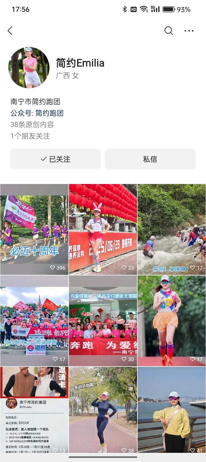 简约Emilia 广州欢喜哥 欧美女星 2025-10-30 18:13:43 20 创作不易,用心坚持,欢迎请BaGua喝几杯爱心咖啡!打赏并支持本文 打赏并删除本文 今天欢喜哥给大家介绍一个视频号:简约Emilia,这个是南宁简约跑团团长的视频账号,欢喜哥关注了也还不到半个月的时间,这位跑团团长经常会在社群里面分享广西省以内的越野赛、马拉松赛事,每次有成员报名甚至还可以抽奖,带领大家运动的同时还可以享受抽奖的快乐,可想而知这是一位多么和蔼可亲的团长。 这个视频账号,Emilia更新地并不是很多,就看最新的这9个作品,就知道主要是专注于分享赛事,自己的日常点点滴滴分享地相对较少,当然做人大家普遍认为还是低调一些,否则被一些不法分子通过分享的作品,关注到你的个人信息,带来不好的遭遇就不太好了。 第三个作品:夏天到了,广西人又开启泡山泉避暑模式!这里就看到了一众运动跑友们,在山上玩山泉水打水仗,6月的时候天气开始炎热,大家都喜欢游山玩水消消暑,能够有一个团队一起出来玩,乐趣自然更多一些。 第二个作品:2025金秀半马官方配速员。这一场金秀半程马拉松线上赛欢喜哥也有报名,同时也得到了一块完赛奖牌,前面也跟大家介绍过金秀马拉松赛事的视频号,Emilia就分享了这一场线下赛的配速员,也就是我们所看到的关门兔,有参加过马拉松赛事的选手们也一定很熟悉,参与赛事的时候不能给关门兔追上,否则就不能顺利完赛。 最新作品:简约跑团祝必迈十周年快乐!这个作品是在2025年10月19日发布的,就是讲述了必迈团队已经成立10周年,能够维持10年的团队相当不容易,即使团队成员会有一些更换,可是能够有一群志同道合的人一起玩,一起锻炼身体,就必定是人生的一件大喜事。 创作不易,用心坚持,欢迎请BaGua喝几杯爱心咖啡!打赏并支持本文 打赏并删除本文 感谢您的支持鼓励,我会继续努力的!文章地址:用户邮箱:打赏金额:USDT 请输入数字点击”去打赏“,即可进行打赏支持本文章哦 Emilia 发表评论