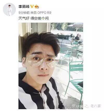 照片中的李易峰戴着一幅金丝眼睛,好似文艺青年,而眉头紧皱大小眼搞怪的李易峰,依然帅气十足,有网友发问“李易峰你帅那么久不累吗?”
