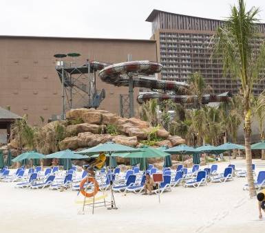 三亚湾红树林度假世界酒店含有超大型的亚马逊丛林水乐园,园区内设有岩龛、岩浆、湖滨、火山及涌浪浪五个主题泳池,并有比肩顶级水上娱乐项目的环状特色漂流河、儿童水寨、巨兽碗滑道、大水炮、螺旋组合滑道、眼镜蛇滑道、四彩竞速滑道、人造沙滩及水幕电影,同时配备湖畔酒吧、岩龛吧等休闲餐吧,让你健身娱乐玩的嗨翻天!