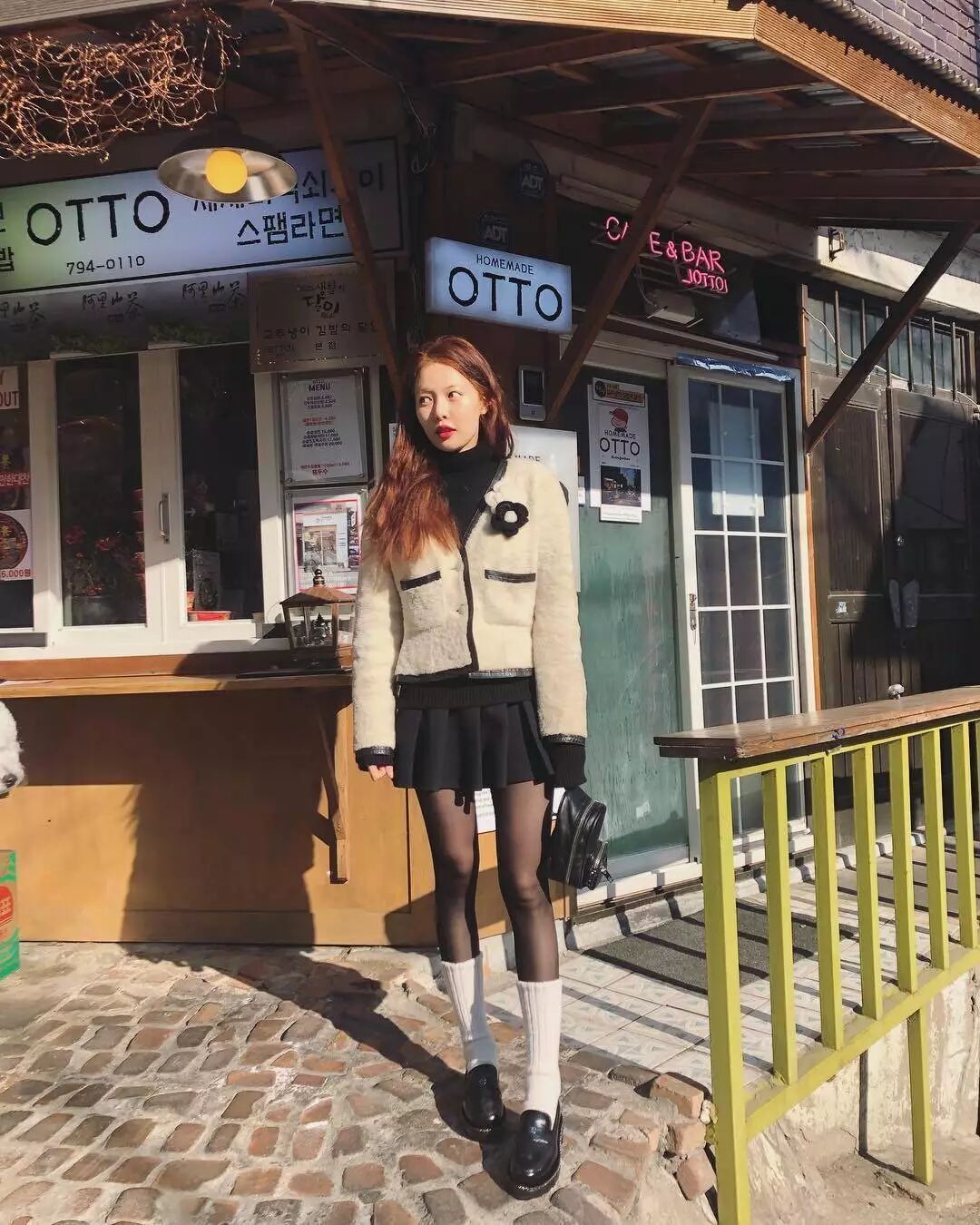 不得不说,敢在冬天露腿的女生很多,但是双腿有泫雅这么白嫩纤细的并不多了...