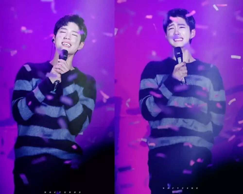 第一次首尔fanmeeting时感动得大哭还拼命忍住泪水说:我算什么啊。