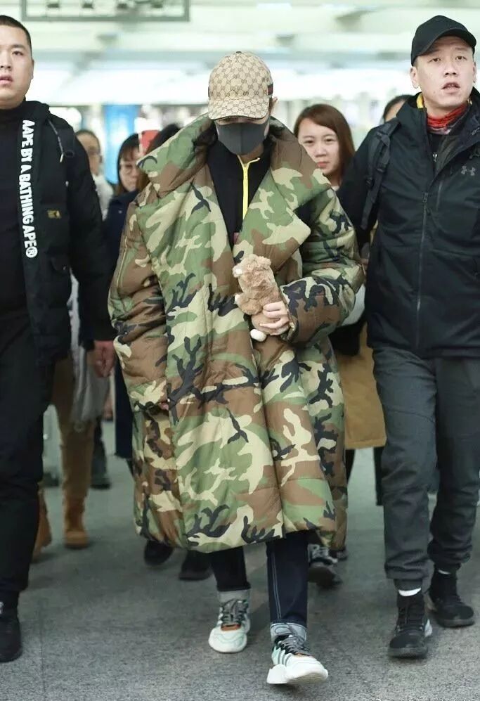 李宇春今天现南京机场,身上这件Norma Kamali 迷彩大衣实在是太抓眼球了,oversize到像一床被子......春春一定不冷吧!