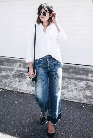 衬衫搭配阔腿裤,是一个永远不会错的经典搭配~