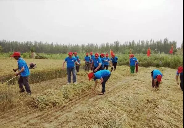 (和田零距离讯 通讯员 :申恒雨 岳德东 )天高日正晌,遍地黄金浪。6月是小麦收获的季节,放眼望去到处都是农民和工作队员忙碌的身影,大家舞动镰刀、收获一片金黄的希望。