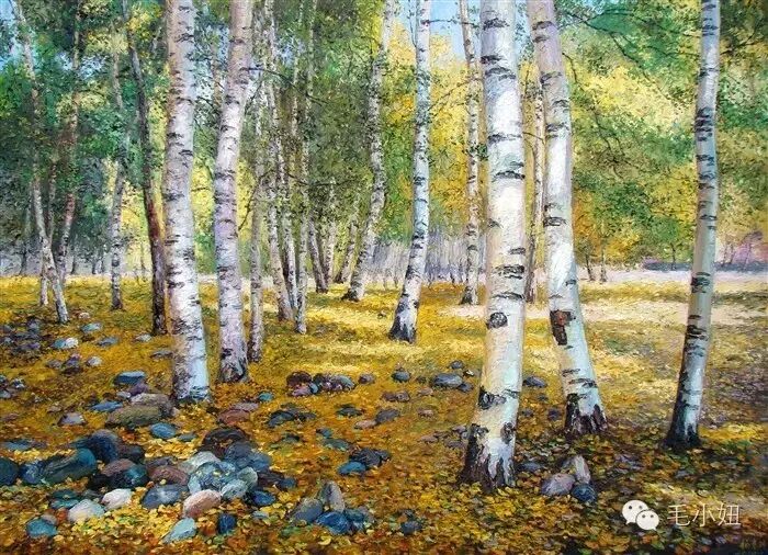 年轻的人们消失在白桦林