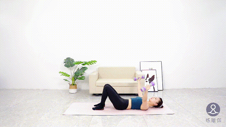 仰卧在垫子上,屈双脚踩地,选择重量适宜的哑铃,双手向中间靠拢,注意手臂要伸直,带动手臂到腋下的肌肉收缩,动作重复20次。