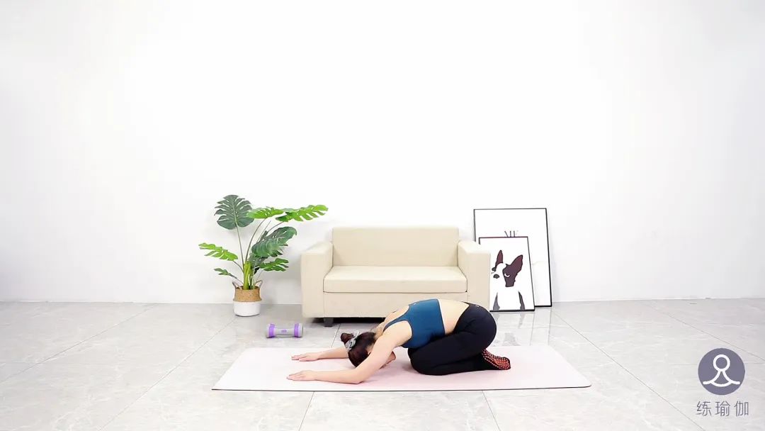 再解开双手,臀部沉向脚跟,婴儿式休息。