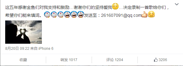 在未来的某一天,我还是会以一个歌者的身份,与广大的金鱼们再次相聚一堂!——《余味》