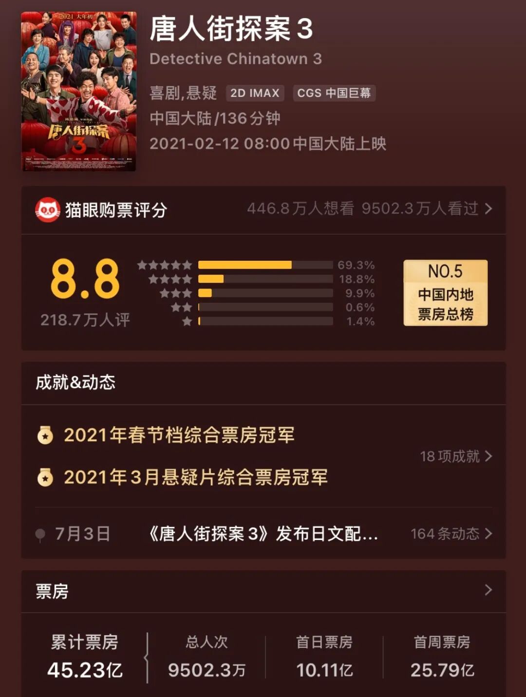 今年初,由张钧甯参演的电影《唐人街探案3》拿下45.23亿元票房,而其待播电影还有陆川执导的《749局》,许鞍华导演的《第一炉香》;待播剧集还有与杨紫、井柏然合作的《女心理师》等。