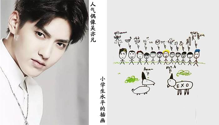 你们都说吴亦凡的字丑,那是因为你们没见过他的画。