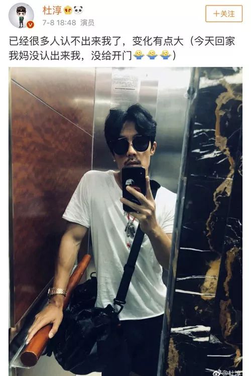 翻了一下杜淳的微博,原来他一直在健身,最近瘦了很多,再加上晒黑留了胡子,就有了现在的效果:
