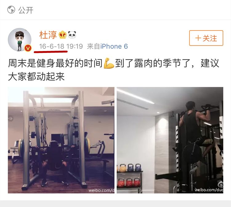 其实杜淳健身不是一天两天了,最早能追溯到两年前: