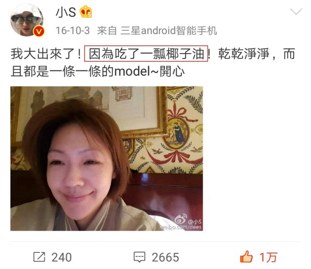 热心如小S,经常在微博和节目里分享保持身材的方法,女王对她提到的椰子油最感兴趣。