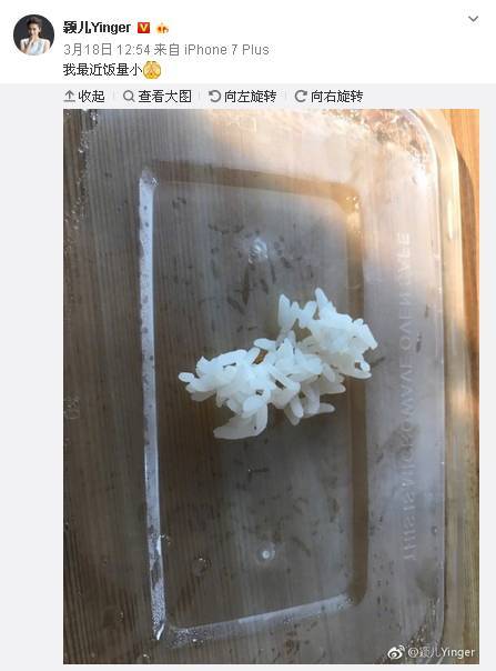 “我体质原因比较难减重,又连夜拍戏到清晨4点,没有时间锻炼只能不吃。因为饿,觉得自己走路都在飘,拍戏的时候台词都说得没有力气,所以我建议大家不要用这种方式减肥。我觉得最好的减肥方式还是运动!”