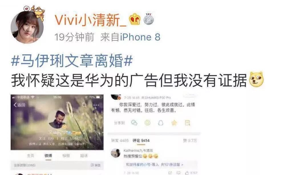 还有眼尖的网友关注点比较特别,发现两人发布微博用的都是华为手机,由此发文评论说: