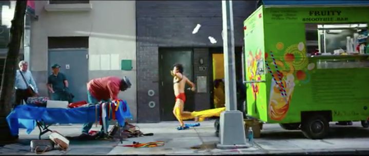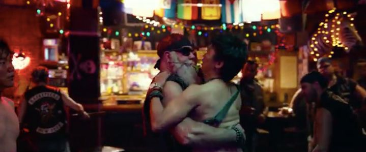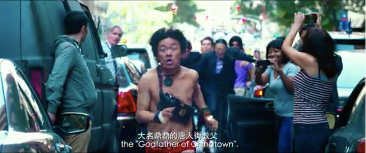 但《唐2》里他就失控了,变成一个只贡献笑料的小丑,他对于探案剧情的推动一就是把秦风骗来,二就是来了一套跳大绳般的风水大百科(一会儿我再说这个事),剩下的就是胡搅蛮缠的瞎逼吵吵,以及穿着红内裤在纽约大街上奔跑。(这里有一段致敬《老男孩》里的巷战,有点意思〉