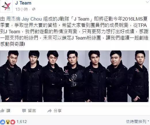 另一方面,杰伦所成立的LOL战队昨日发布了战队LOGO跟定妆照: