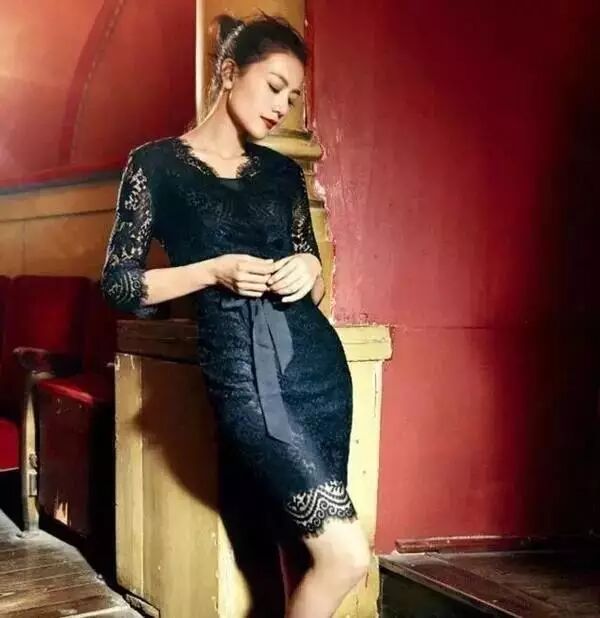 清新女神也是可以驾驭性感成熟的装扮,黑色蕾丝修身裙,加上艳丽的红唇,艳丽性感火辣。