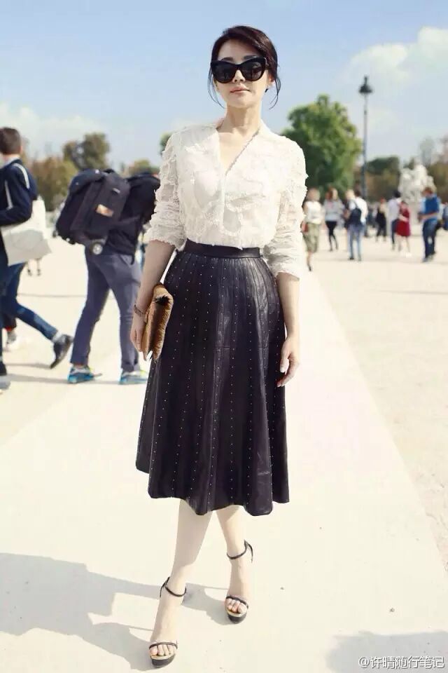 简洁的白衬衫搭配A字黑色半裙,青春十足!谁能看出女神的真实年龄?!▼