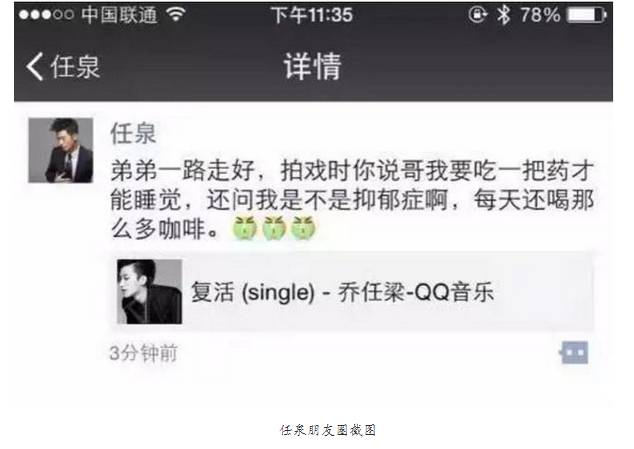 而乔任梁,就是在去年被诊断为抑郁症的。公司不会对外宣传,乔任梁才28岁大好的年纪那么要强的性格,除非快受不了了,他不会说太多的。