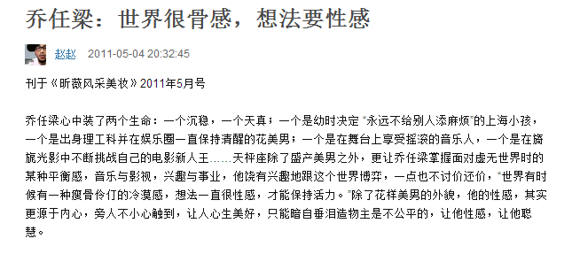 当年时尚杂志《昕薇》对乔任梁的采访还静静的躺在豆瓣历史日记里面,现在看来,这位“不给别人添麻烦的上海小孩”,终于以自己的方式和这个世界道别。