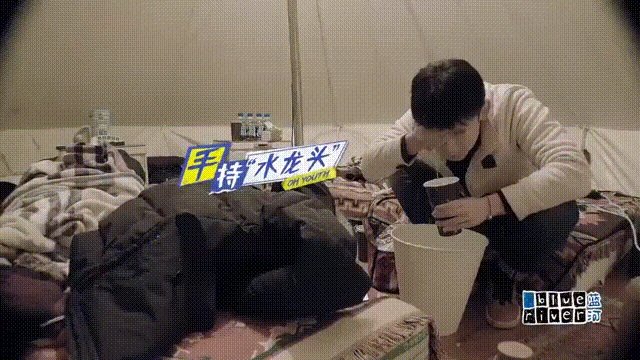 没有洗脸盆,把垃圾桶洗洗刷刷当脸盆用的董子健。