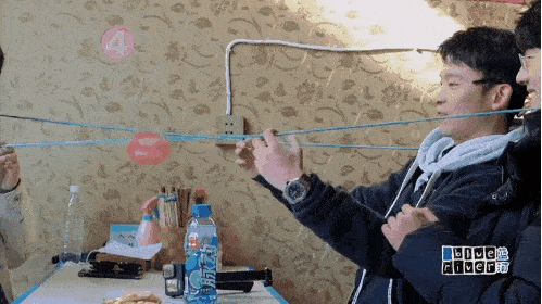 吃饭时三人还异想天开用卫衣带子翻花绳。