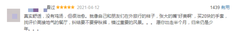 “舒适,没有鸡汤,治愈。”是网友给出最多的评价。