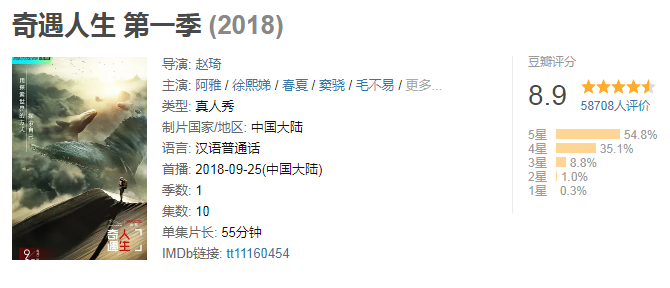 叔不禁想到在豆瓣上至今还被评分8.9的《奇遇人生》。